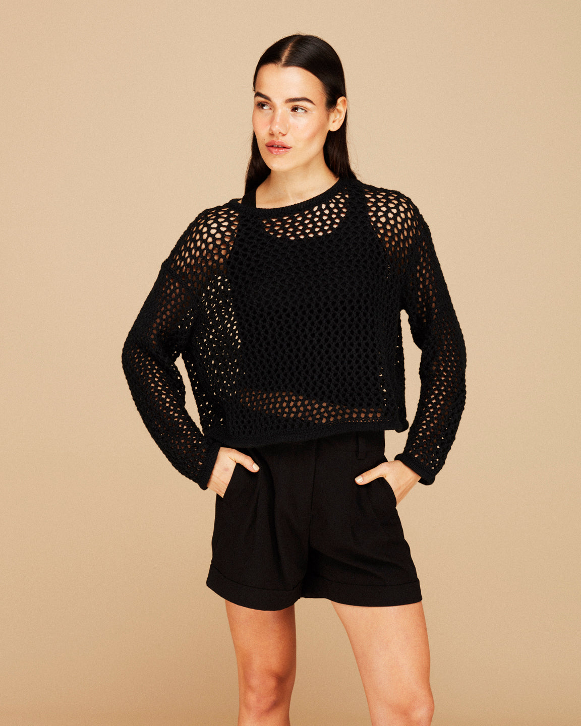 CHALECO TEJIDO CALADO NEGRO TUTA