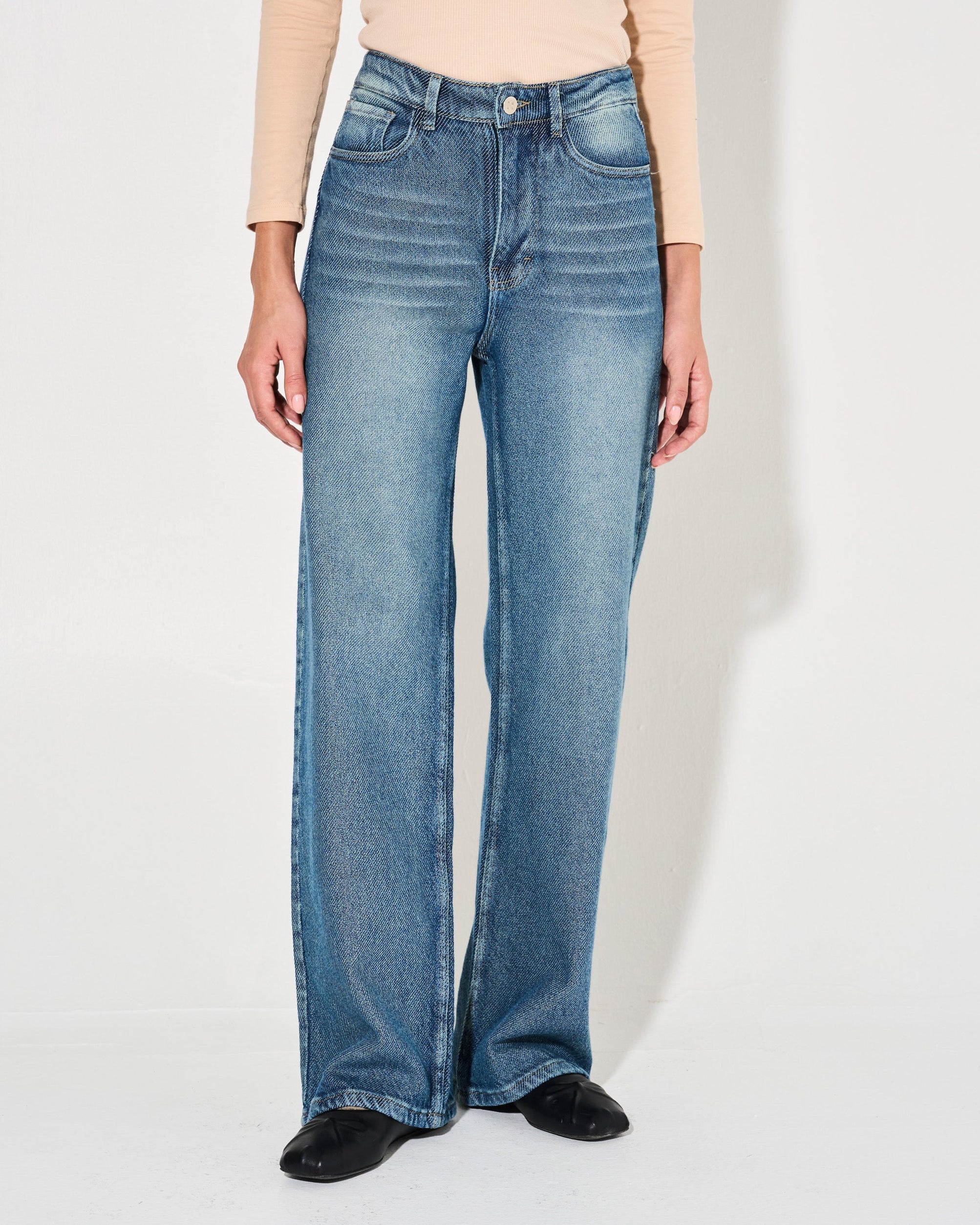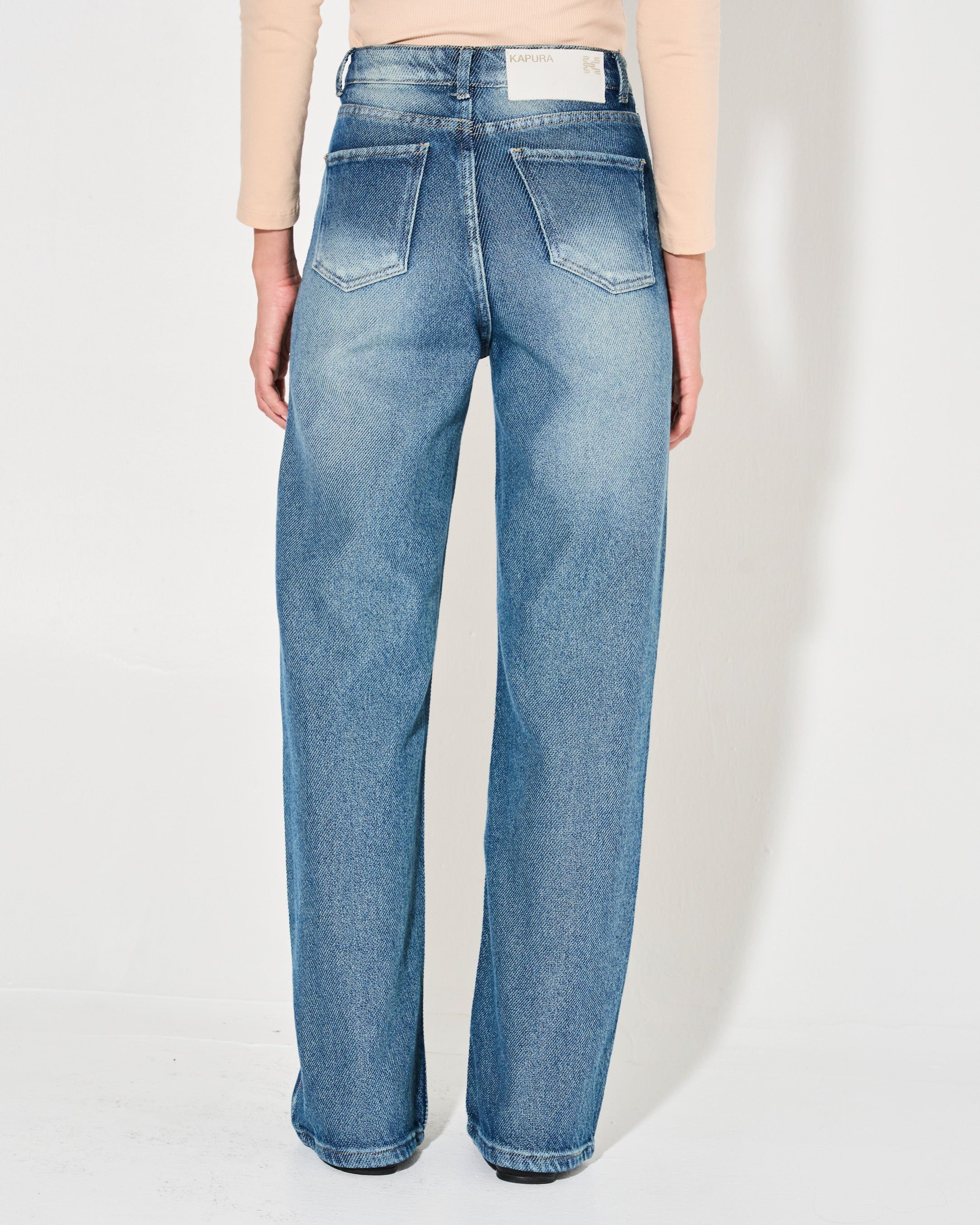 Los JEANS TEPA AZUL en denim texturado son la elección perfecta para aquellos que buscan un estilo baggy y moderno. Con piernas anchas y tiro alto, su caída recta te garantiza una apariencia elegante y sofisticada.