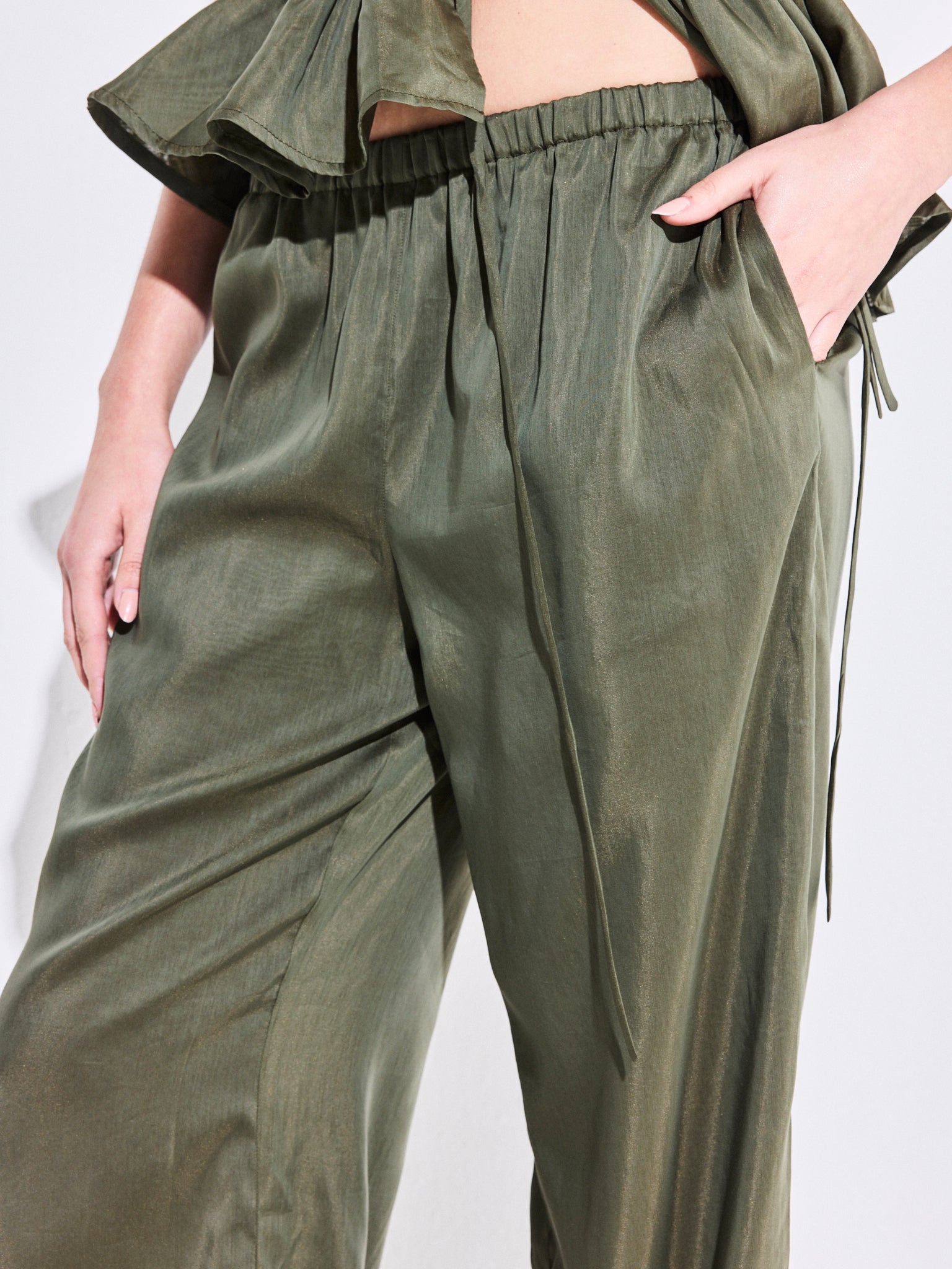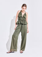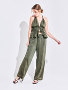 El Pantalón Alegría Verde está confeccionado en cotton silk, una fibra de alta calidad que aporta frescura y suavidad. De calce fluido, cuenta con pretina elasticada y tirante ajustable que permiten un ajuste cómodo y versátil. Su caída recta aporta movimiento y ligereza, convirtiéndolo en un aliado perfecto para los días de verano.