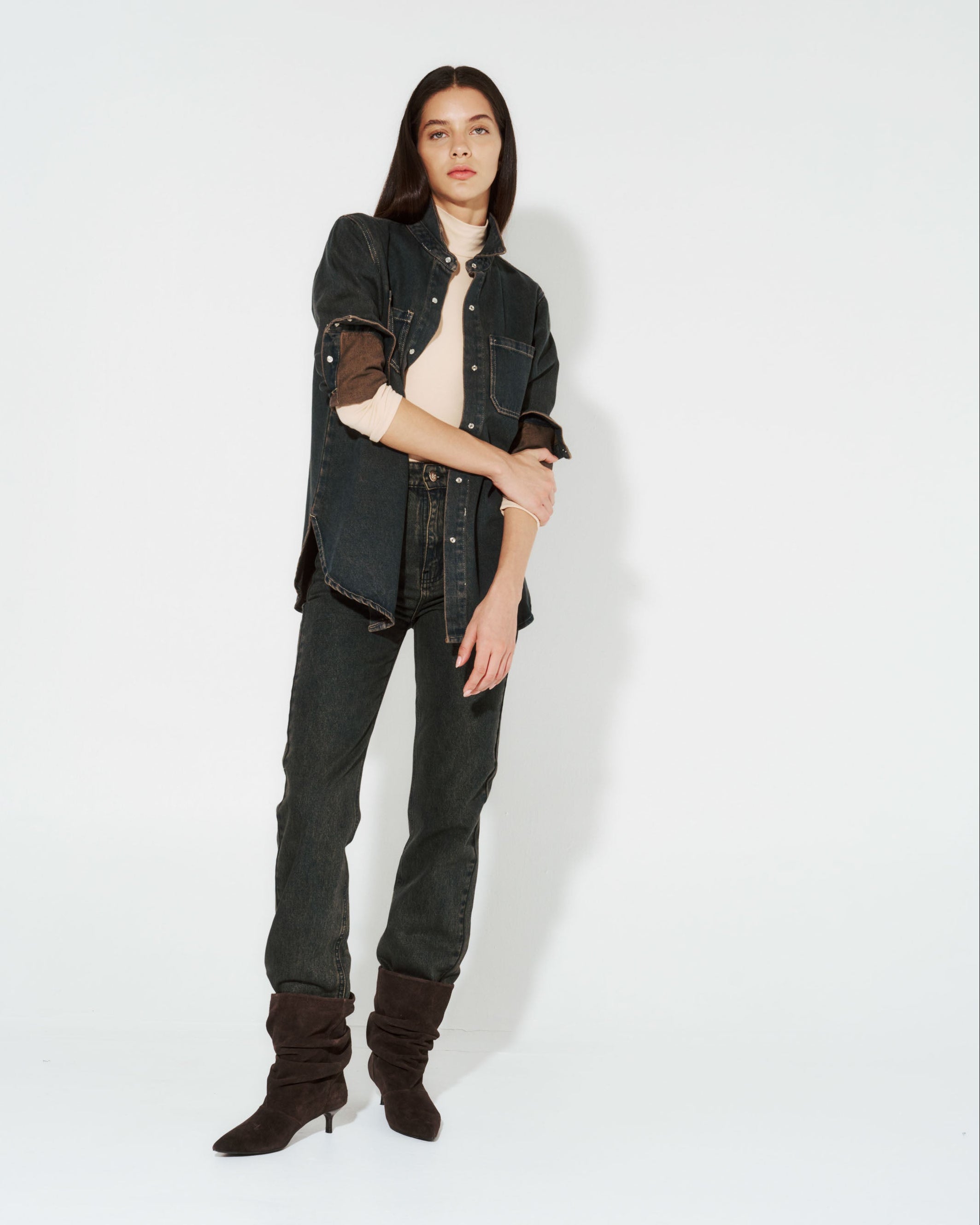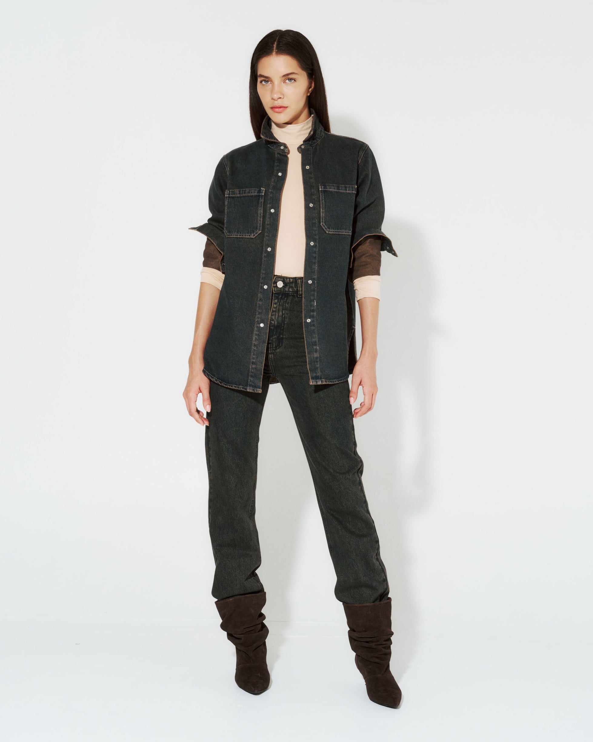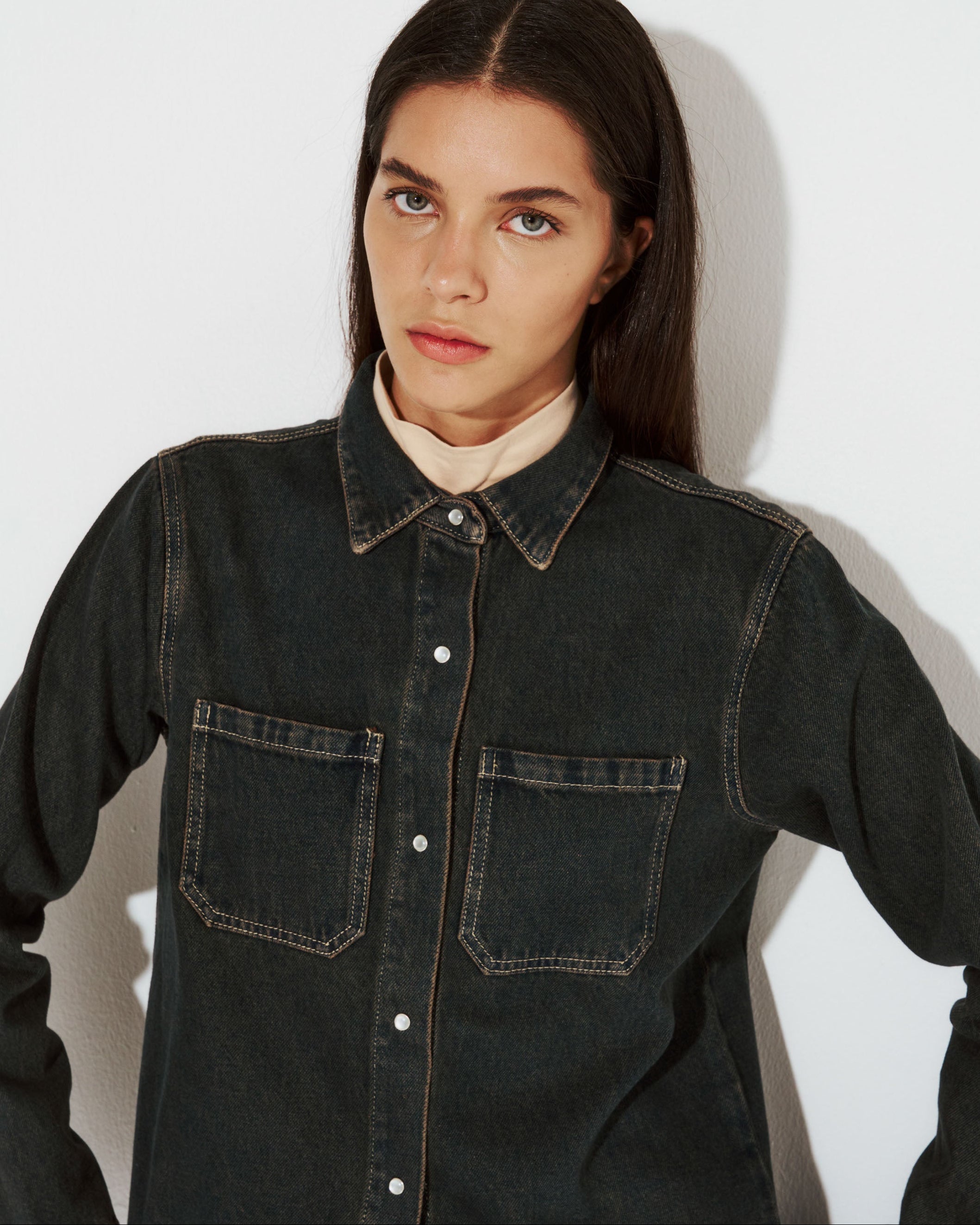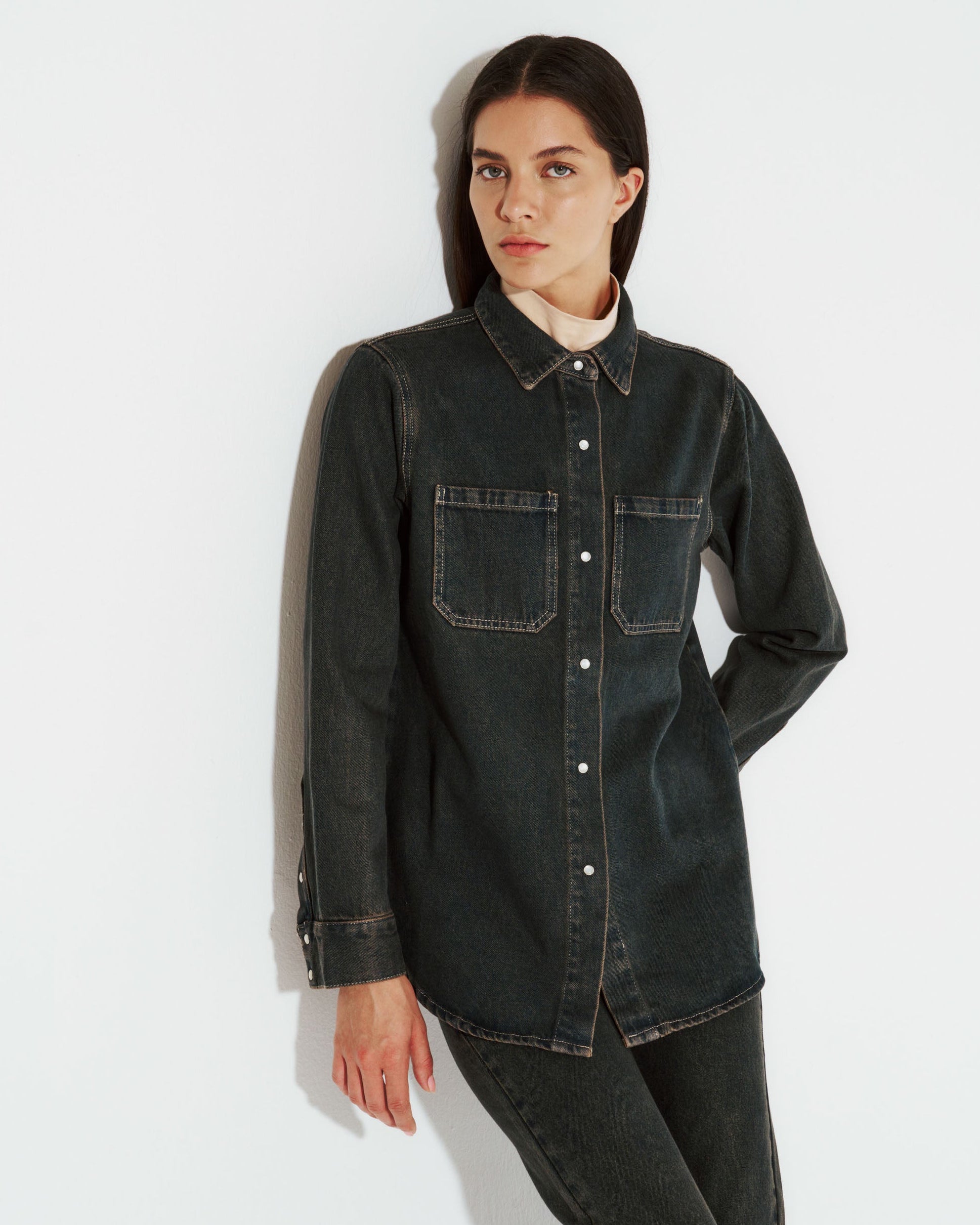 Descubre el toque único de la camisa KUTUNA OXIDADA. Fabricada en denim básico de alta calidad, cuenta con broches delanteros para un estilo versátil y moderno.
