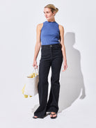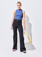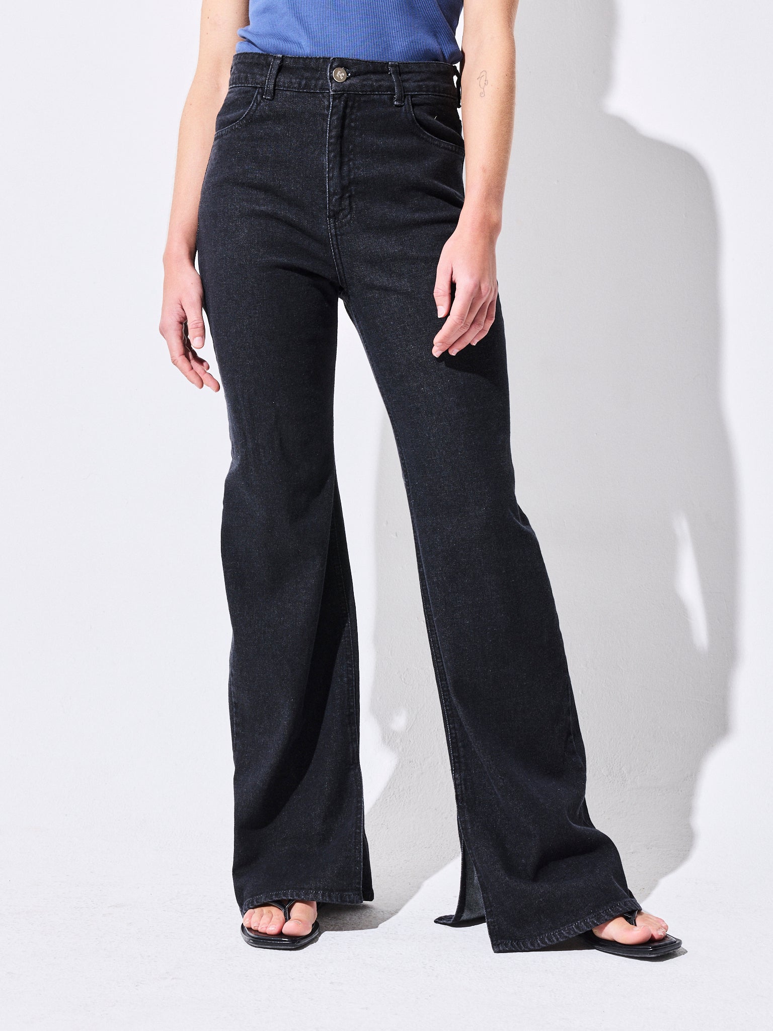 Estos jeans de tiro alto son cómodos y cuentan con tajos laterales que le dan un toque distintivo. Son perfectos para cualquier ocasión.