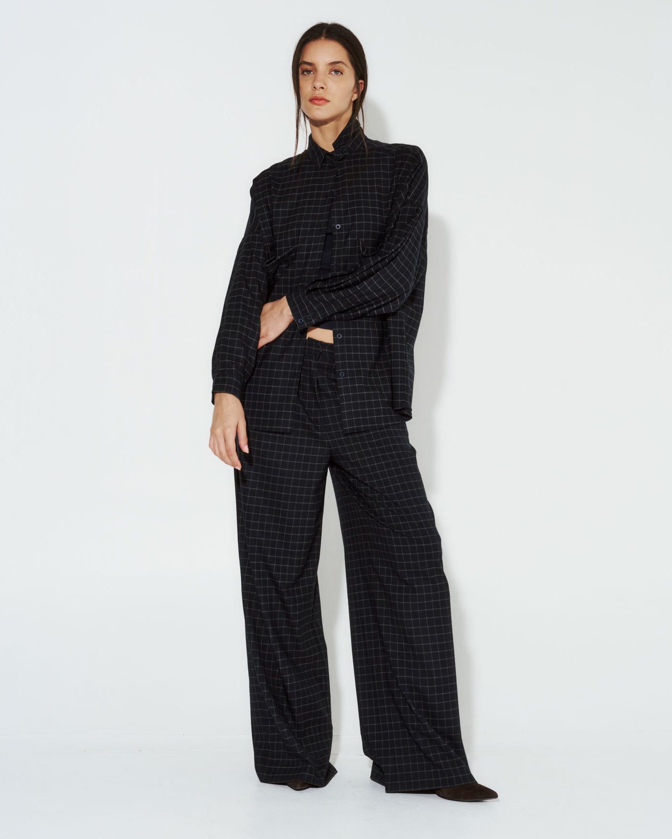 Pantalón Nébula con corte sastrero en lino, diseñado para una silueta impecable. Los cuadros azules aportan carácter a este básico versátil que funciona tanto en ambientes profesionales como en looks casuales. Confeccionado en lino de calidad, garantiza transpirabilidad y comodidad durante todo el día. Su corte recto y estructura clásica lo convierten en una inversión atemporal para tu guardarropa.
