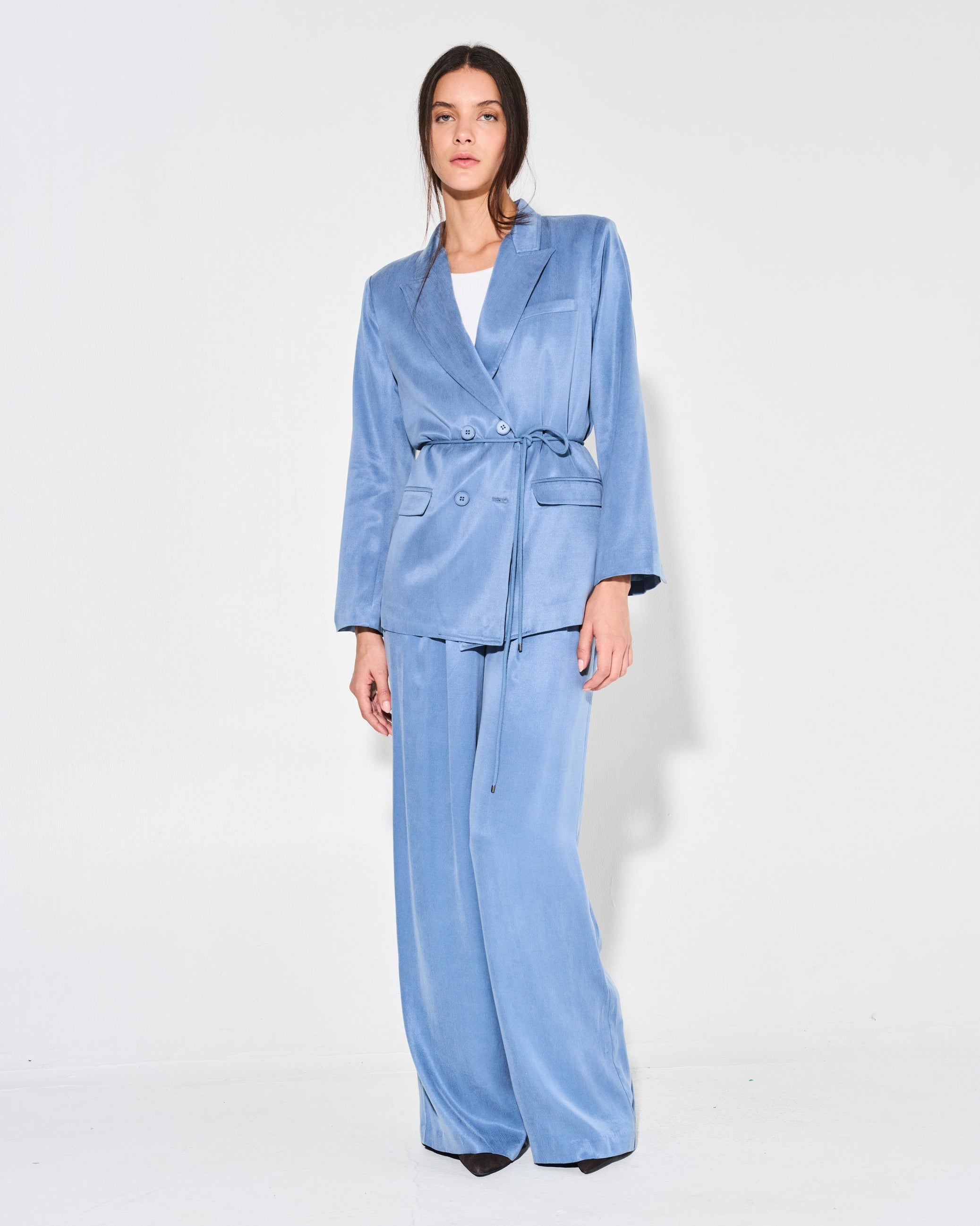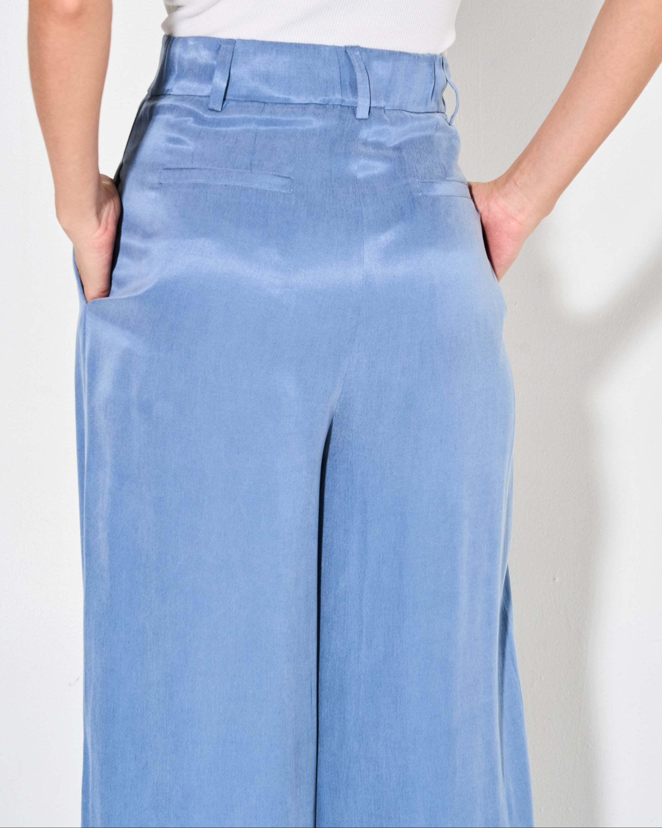 Descubre la comodidad y estilo del pantalón ola. Confeccionado en tela de cupro, este pantalón sastre tiene un calce relajado y prácticos bolsillos laterales. Ideal para un look elegante y cómodo a la vez.