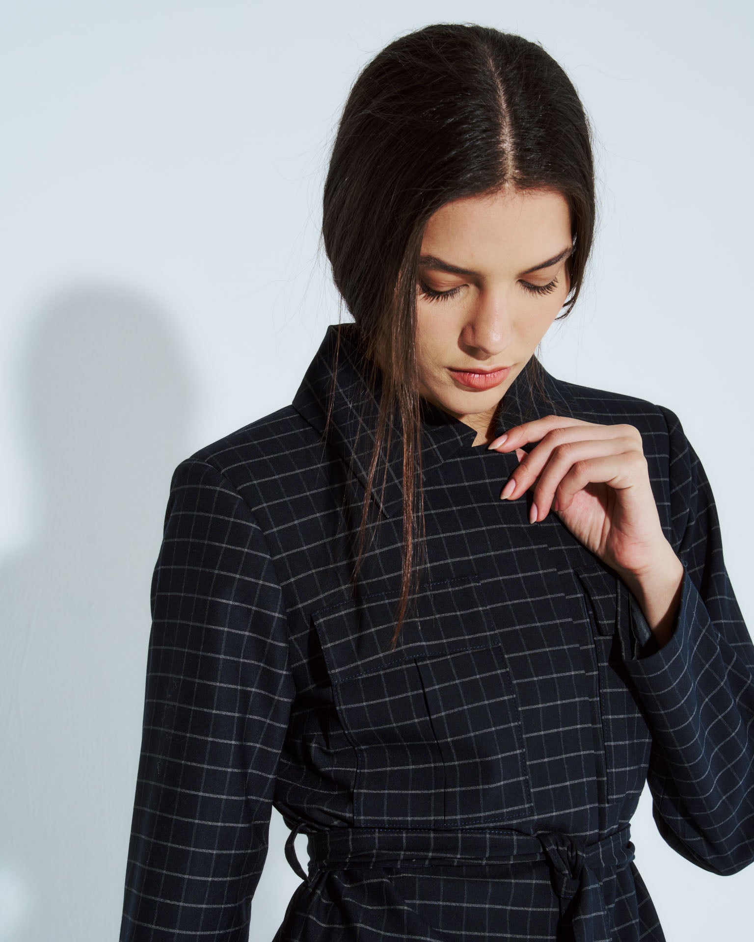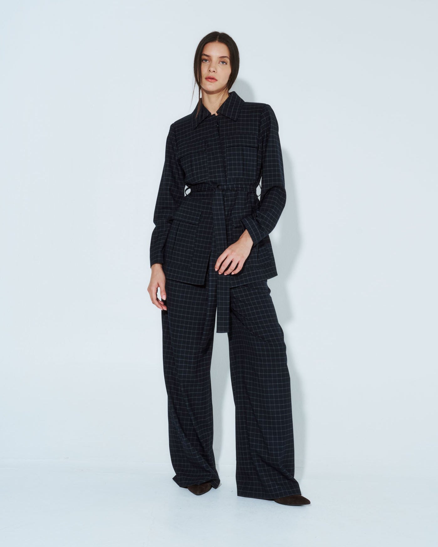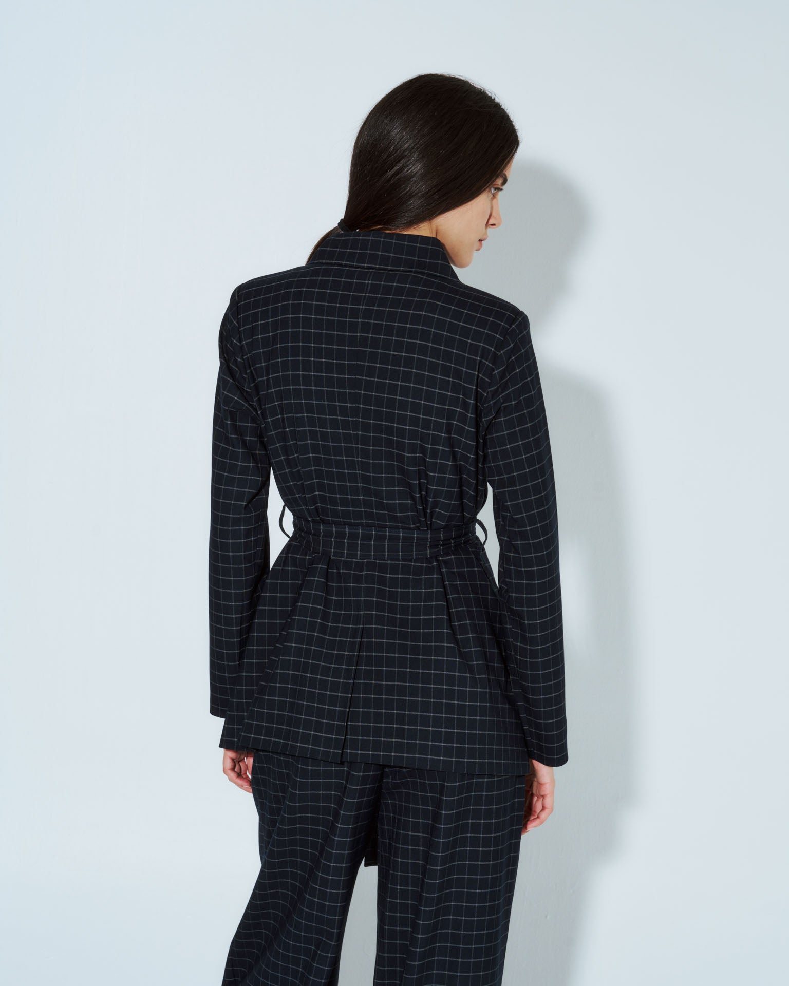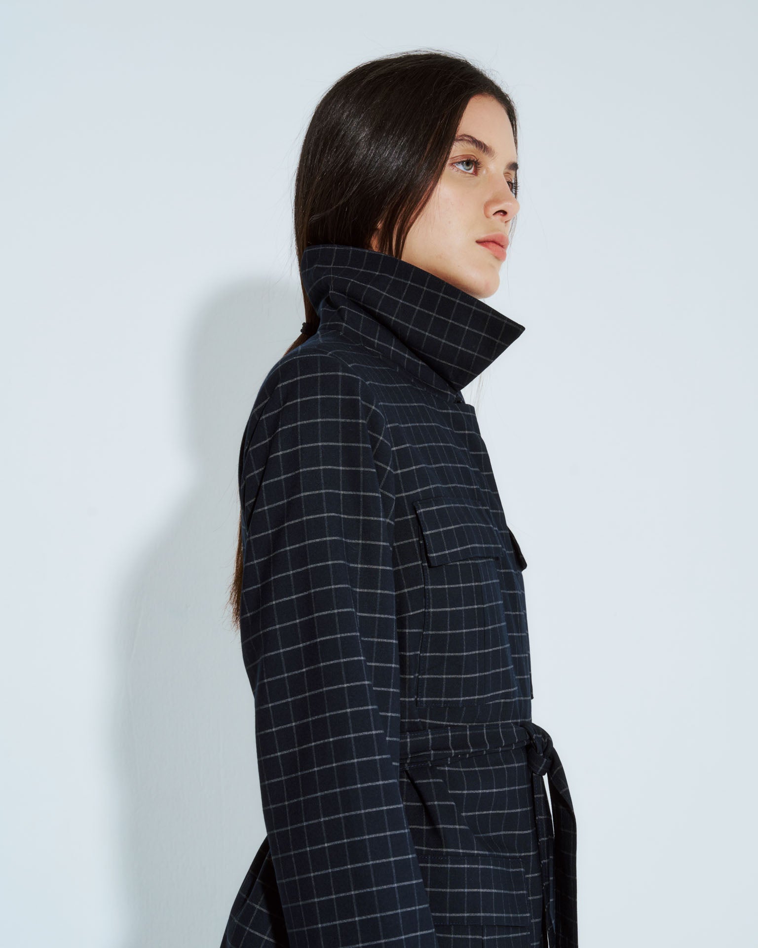 Chaqueta safari Nébula en cuadrille azul, elaborada en lino que ofrece comodidad y transpirabilidad. Cuenta con cintura ajustable mediante lazo para adaptar el largo según tu preferencia, y botones discretos que crean una silueta limpia. Su corte relajado y funcional la convierte en una pieza versátil para combinar con diferentes estilos, desde outfits casuales hasta propuestas más refinadas. Una prenda esencial para tu guardarropa de transición.
