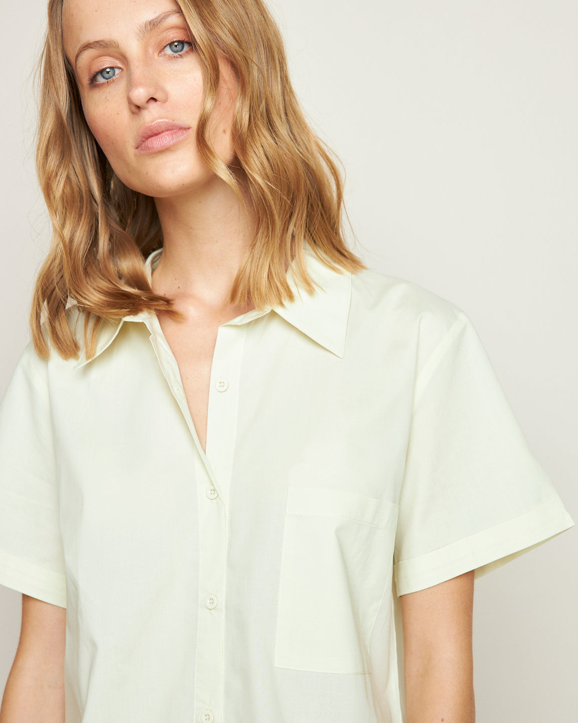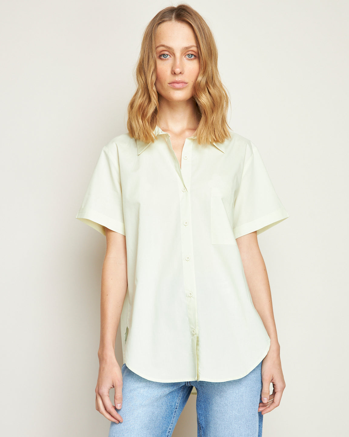 YELLOW SHORT SLEEVE COTTON BLOUSE
