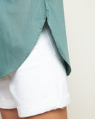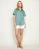 GREEN SHORT SLEEVE COTTON BLOUSE