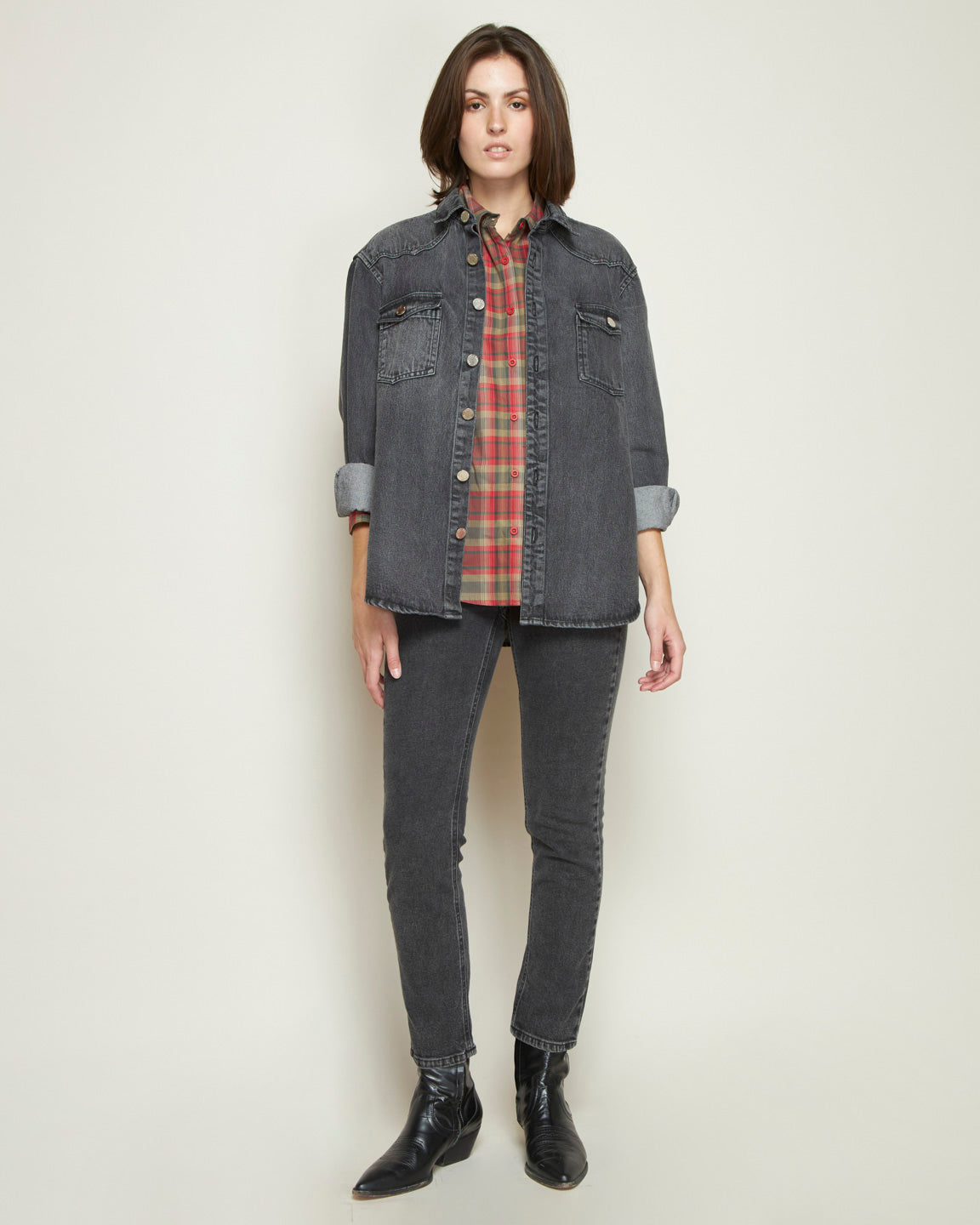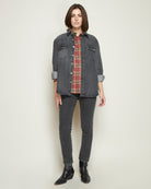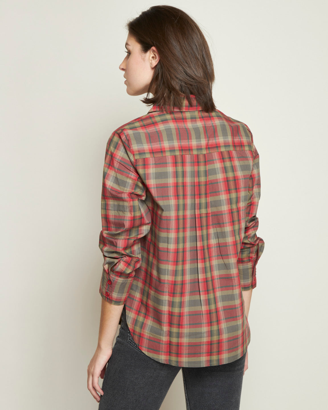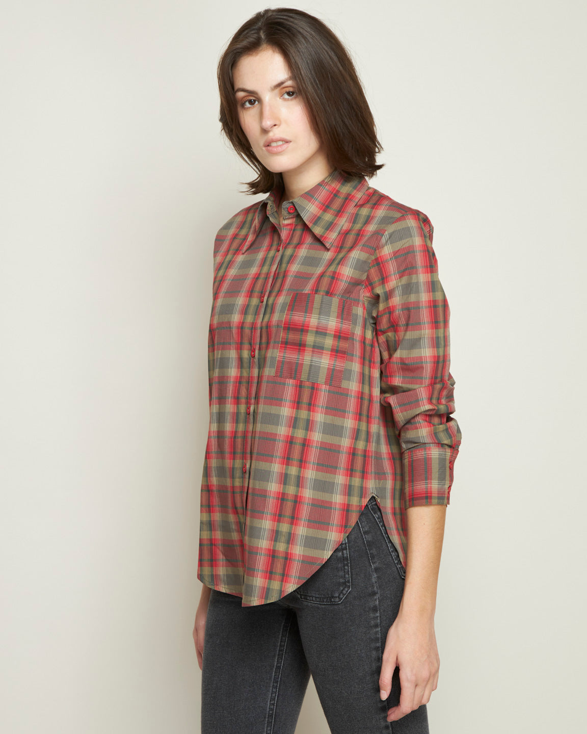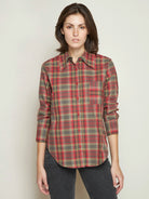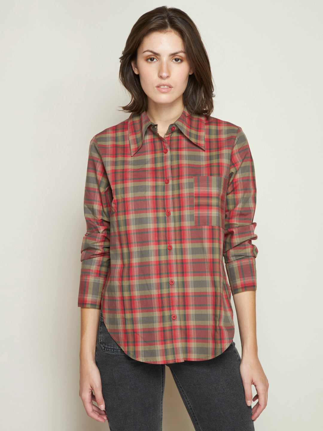 COTTON LONG-SLEEVE RED PLAID BLOUSE