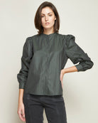 GREEN LONG SLEEVE MAO BLOUSE