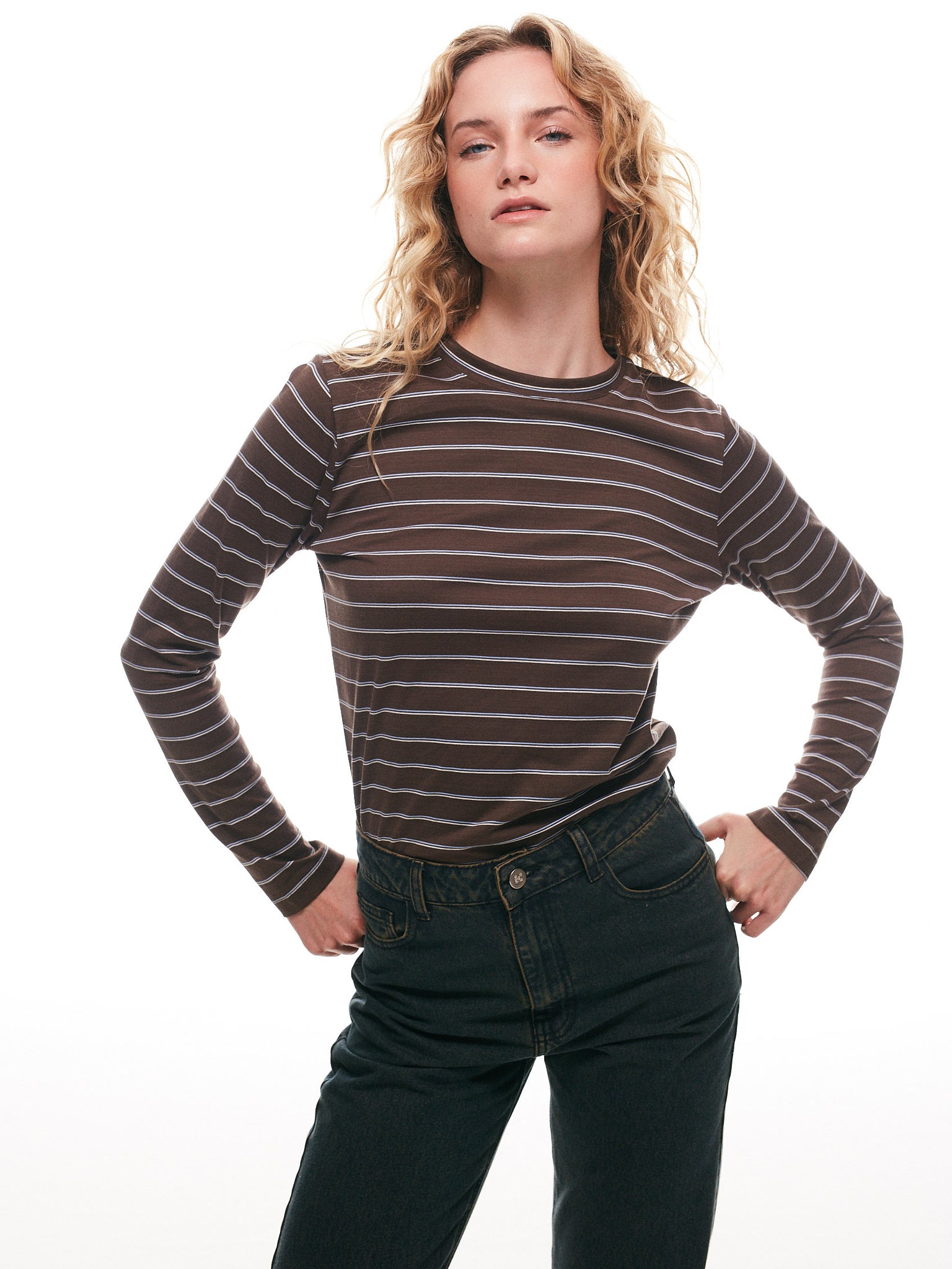 Descubre la elegancia y sofisticación de nuestra CAMISETA ULMO CAFE RAYAS. Con su clásico diseño de rayas café y corte básico, esta camiseta es perfecta para cualquier ocasión.